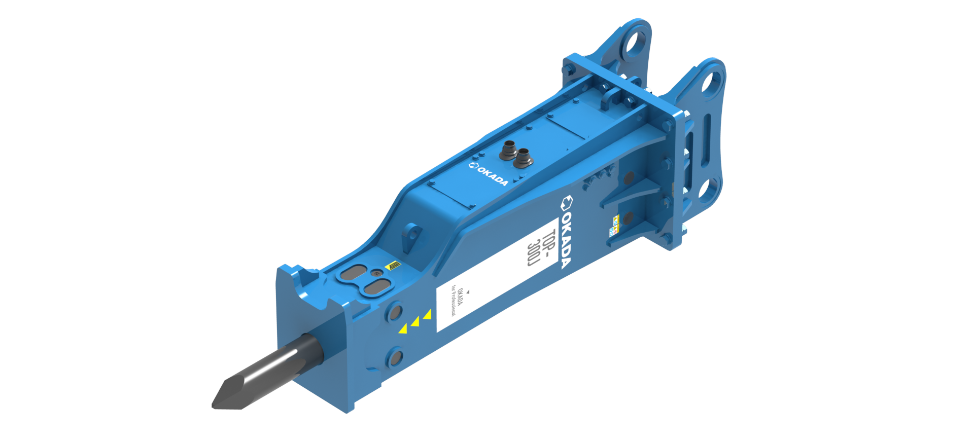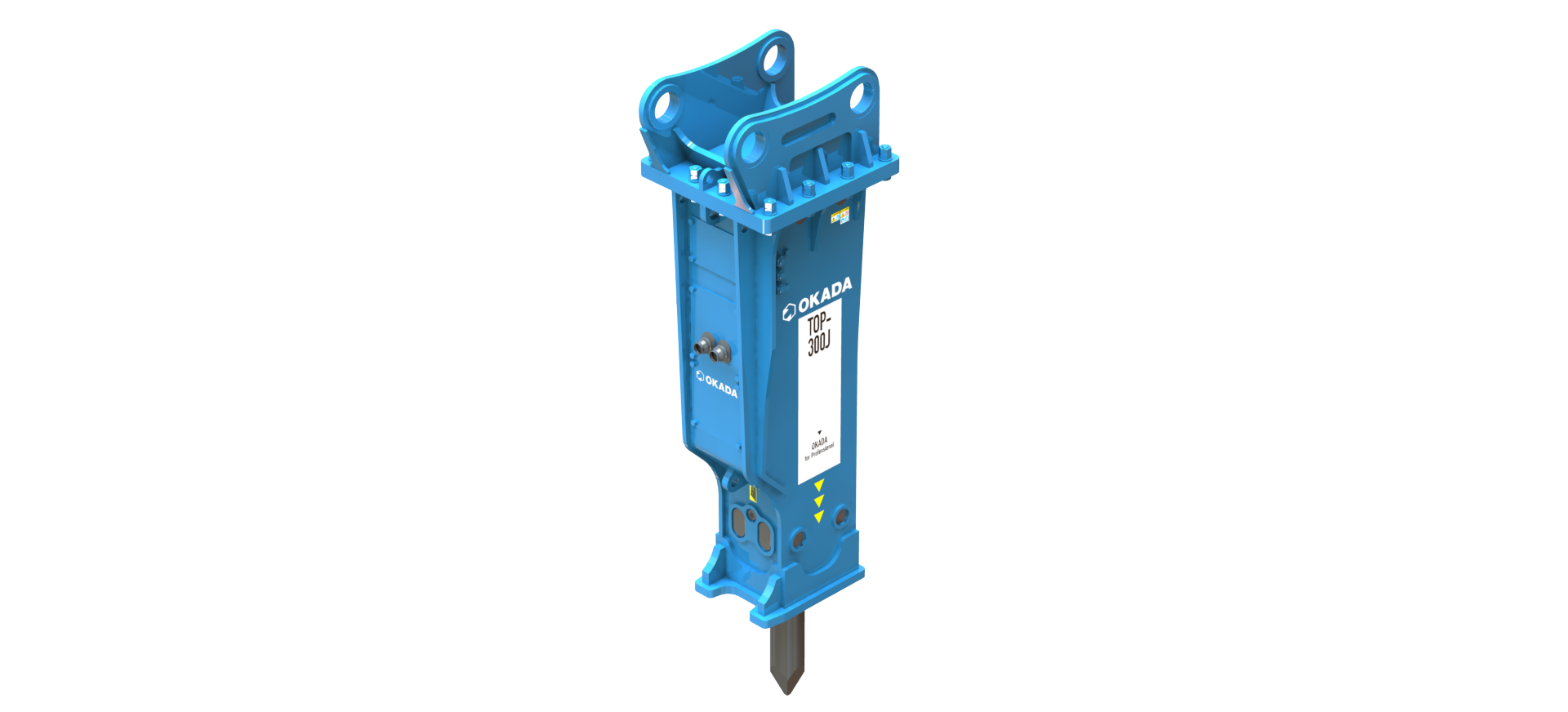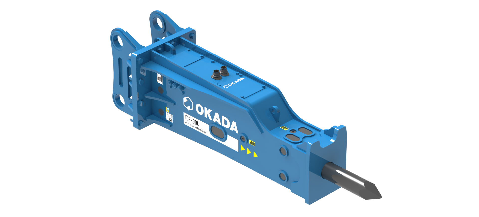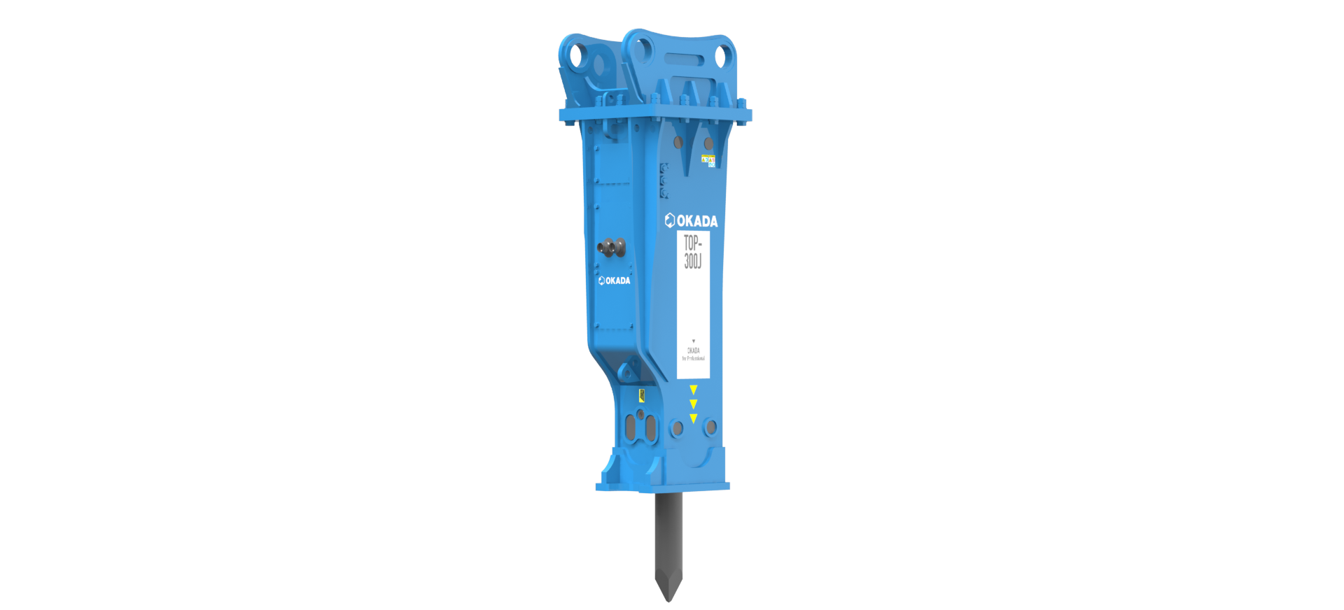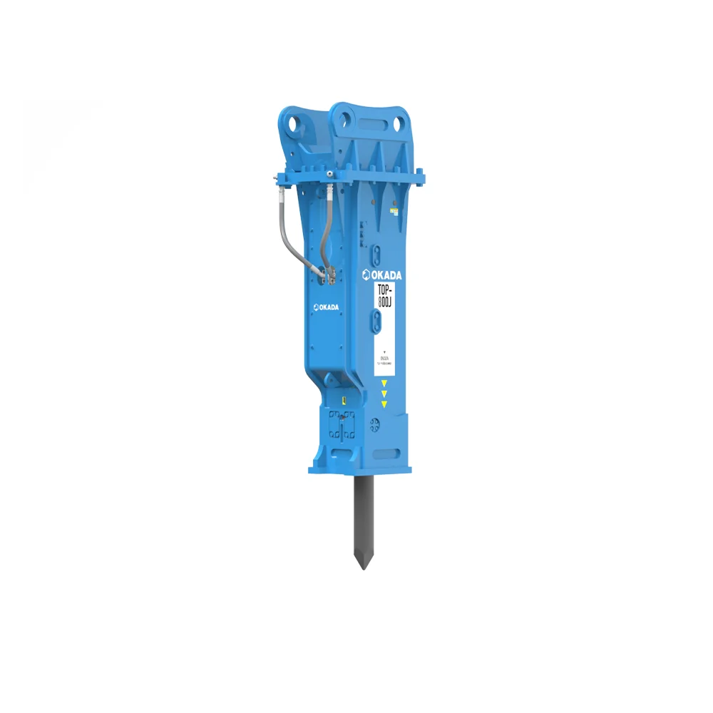 Built to Japanese standards, the Okada TOP-300J hammer attachment is a durable, high-performance breaker for Large sized excavators.